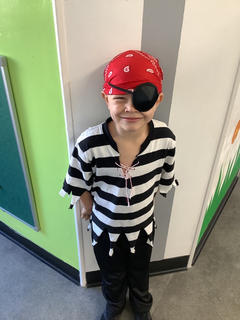 The children recently enjoyed an arrgh-mazing pirate week. They experienced the pirate life by dressing up like pirates, walking the plank in the garden and practising their balancing skills.
